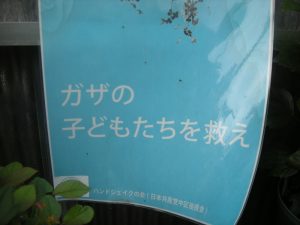 何かできることを…と思うけれど、我が家の前に「ガザの子どもたちを救え」のポスターを張るくらいしかできない私です。報道を聞くたびに、胸が痛くて仕方がありません。どの国の人も命は一人に一つ、人生は一度です。