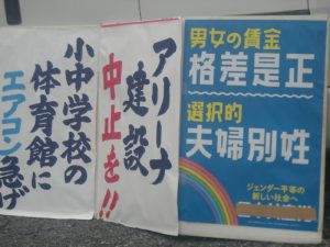 明日は投票日・・・アリーナ反対の市長候補(向谷千鳥さん)と市議候補(大平かよさん)を押しています。