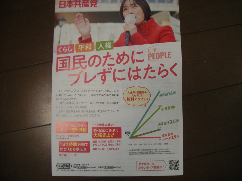 「高市総理」を選べば、「突然」「そんなこと聞いてない」「数の論理」で、憲法9条を変えたり、消費税減税も「検討した結果できません」、放漫財政で円安(日本の財政運営の評価が下がるためにおこる)がひどくなったりするかも・・・・。